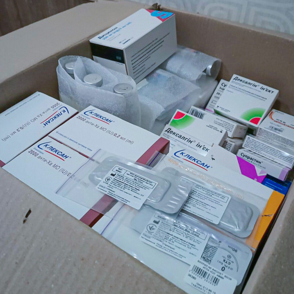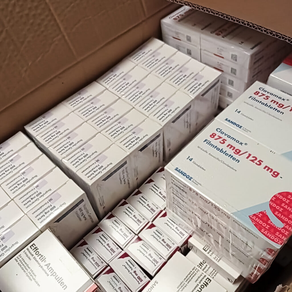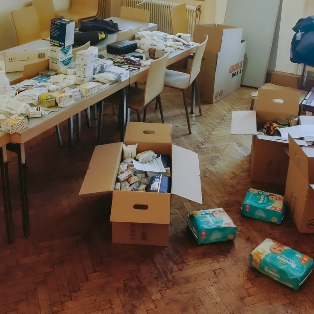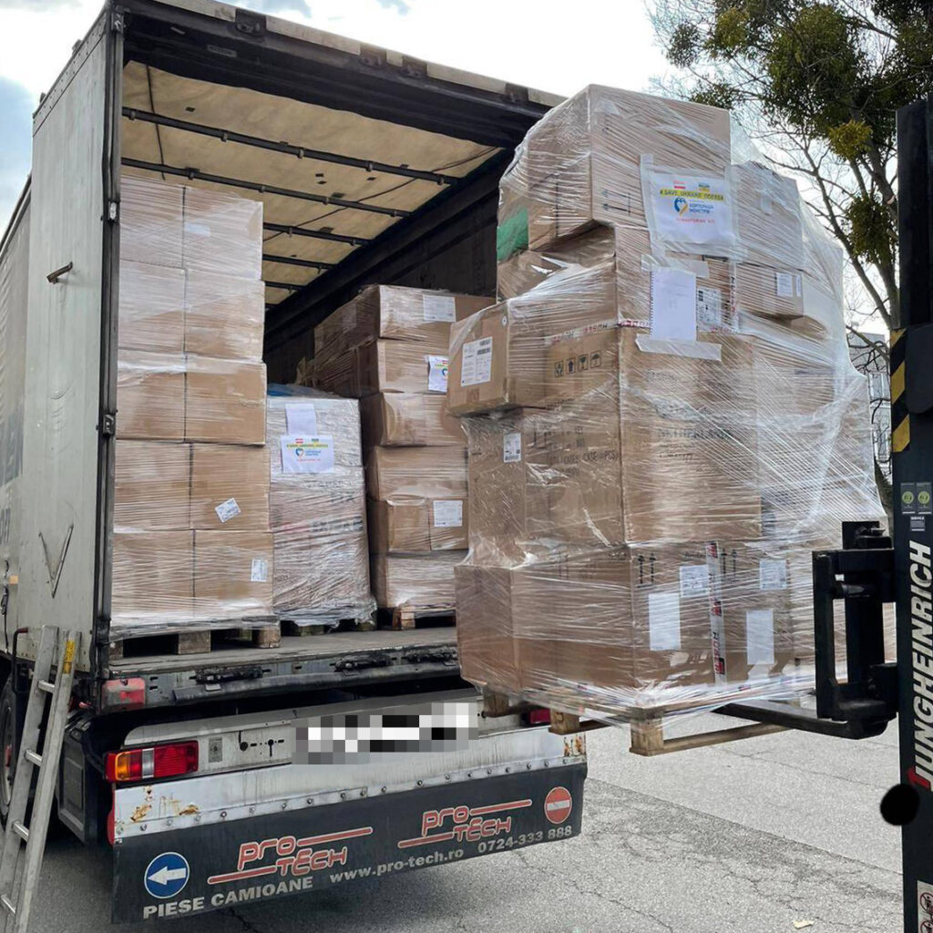 In den ersten beiden Märzwochen 2022 begannen wir mit Lieferungen von Wien aus, wo diese von unseren Partnern der Austria Sagitta organisiert und verpackt wurden. Der Fokus bei den ersten Lieferungen lag auf Medikamenten, Medizinalprodukten und Hygieneartikeln.