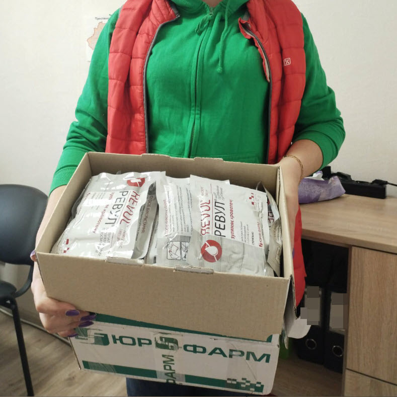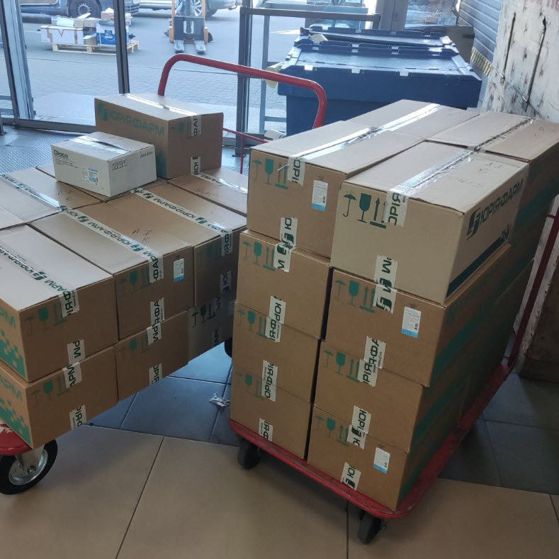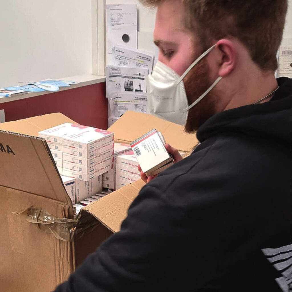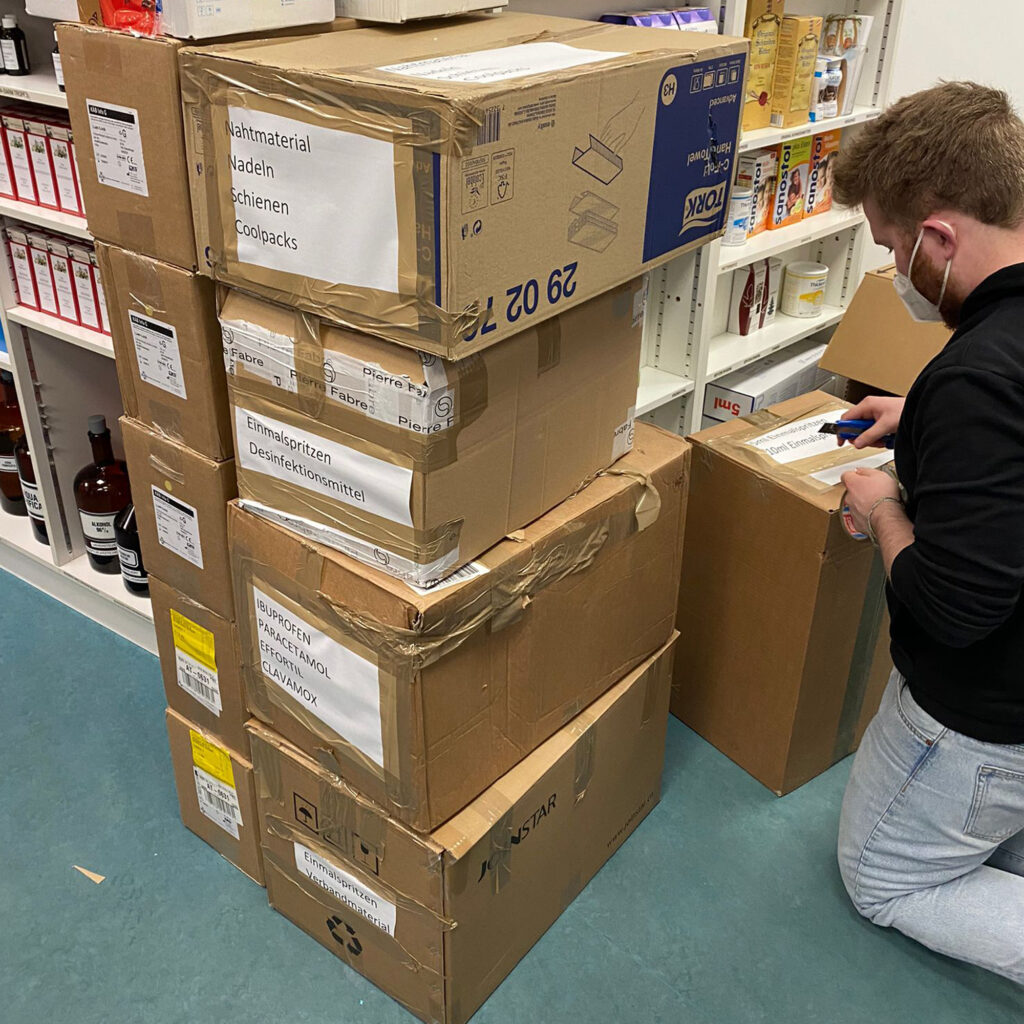 In den ersten beiden Märzwochen 2022 begannen wir mit Lieferungen von Wien aus, wo diese von unseren Partnern der Austria Sagitta organisiert und verpackt wurden. Der Fokus bei den ersten Lieferungen lag auf Medikamenten, Medizinalprodukten und Hygieneartikeln.