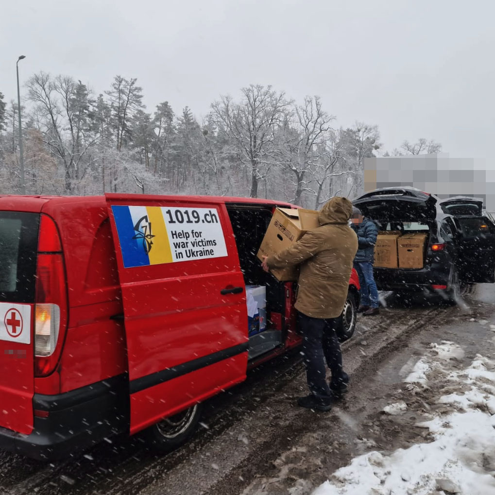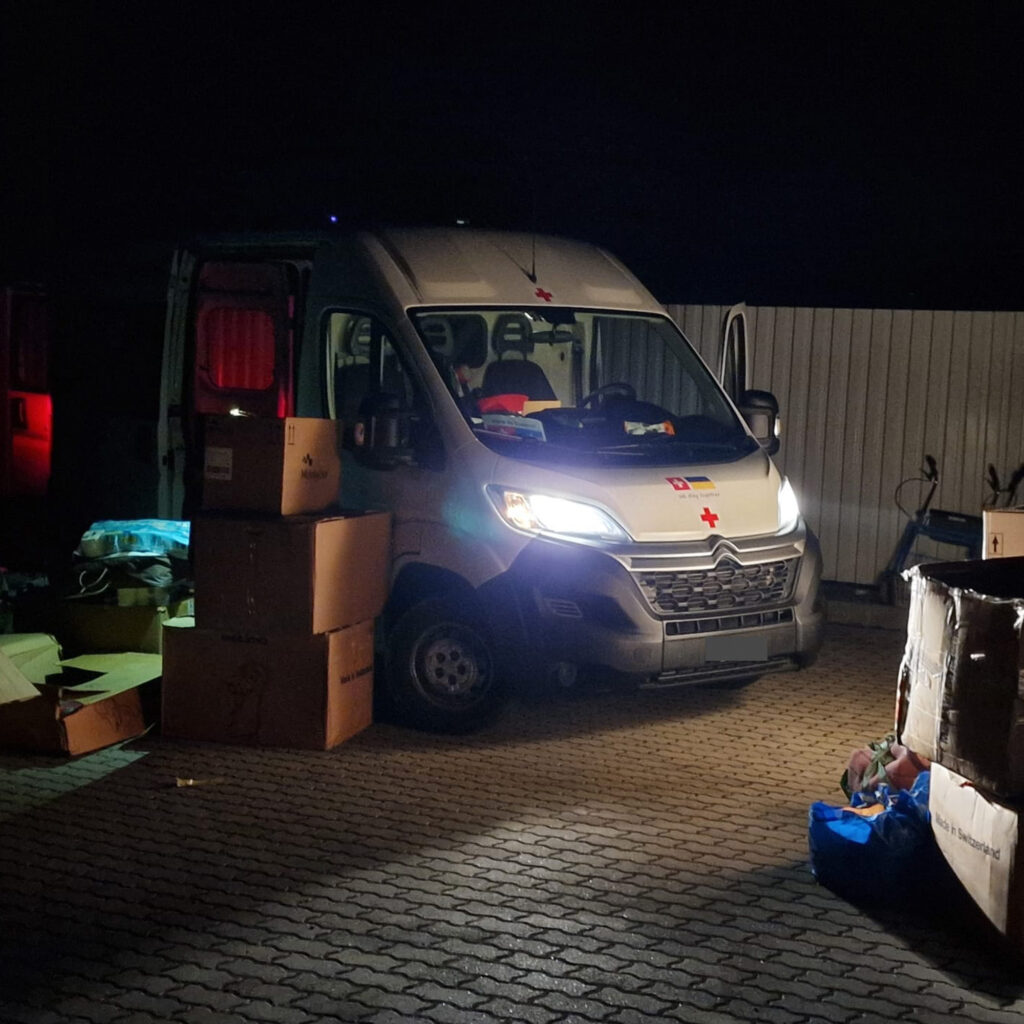Vom 27. bis 29. Dezember waren wir persönlich mit einer Lieferung unterwegs. Von Allschwil ging es via Katowice in Polen an die Polnisch-Ukrainische Grenze, wo wir kurz hinter dem Grenzübergang Hilfsgüter im Wert von ca. CHF 30’000 an drei Kollegen des Hilfswerks „BONUM“ überreichen konnten. Unsere Kollegen brachten die diversen Hilfsgüter danach nach Lviv, von wo aus sie nach Charkiw, Cherson, Ternopil und Kiew weiterverteilt wurden. Dabei waren diesmal unter anderem zwei dringend benötigte Ultraschall Geräte, 100 warme Decken, acht Generatoren, Powerstations, Schlafsäcke und Medikamente.