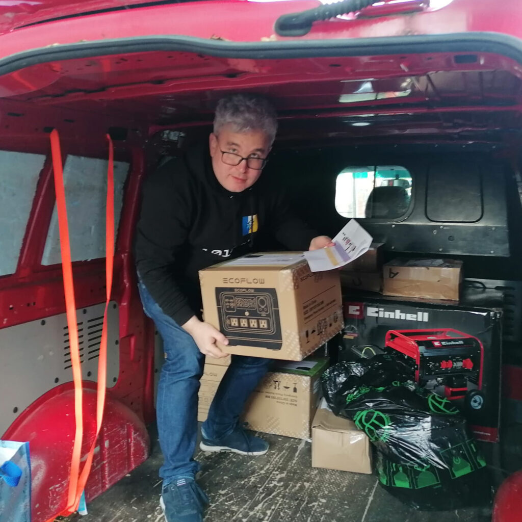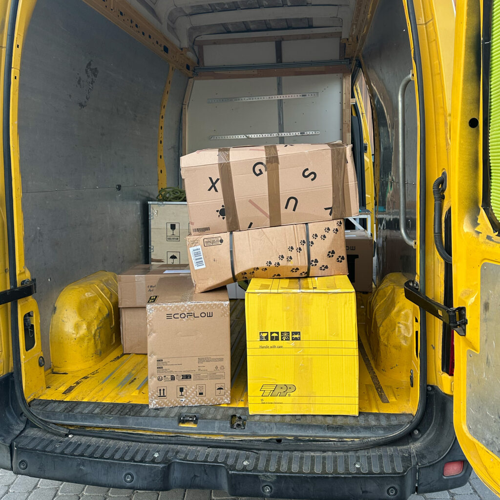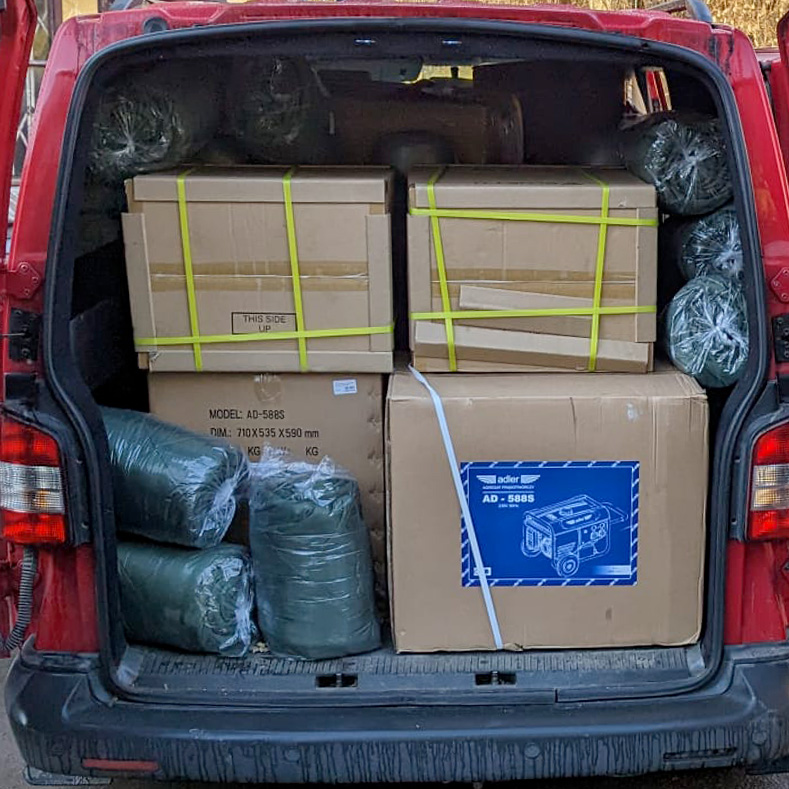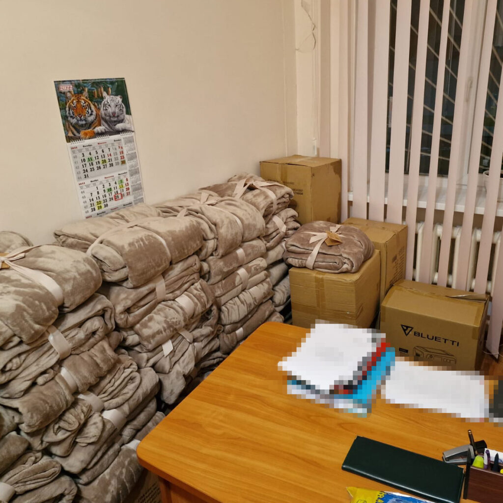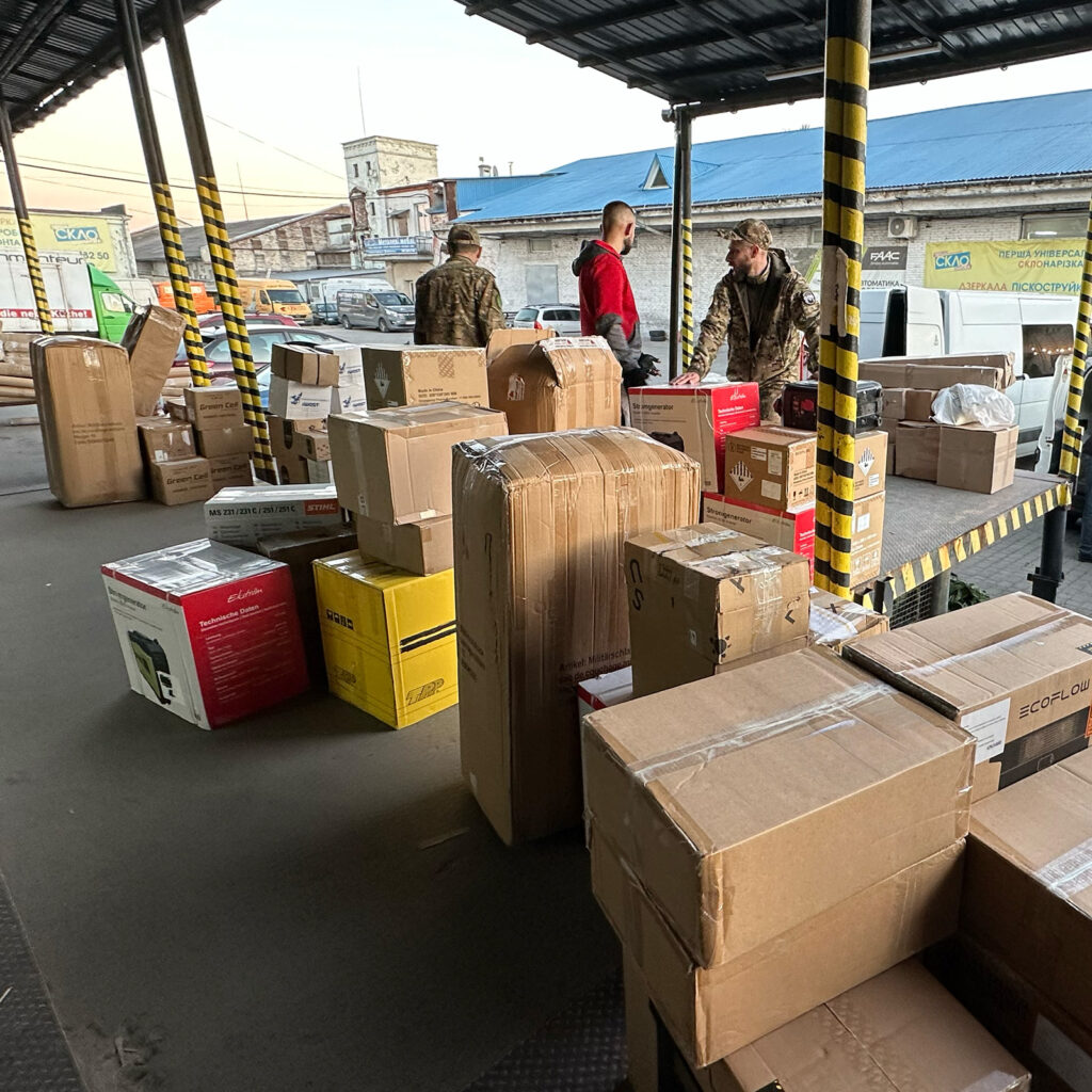 Ende November durften wir viele Waren nach Lviv, Kiew und Charkiw bringen. Ein wichtiger Bestandteil der Lieferungen waren Stromgeneratoren, Powerbanks mit extrem hoher Kapazität sowie warme Decken und Schlafsäcke.