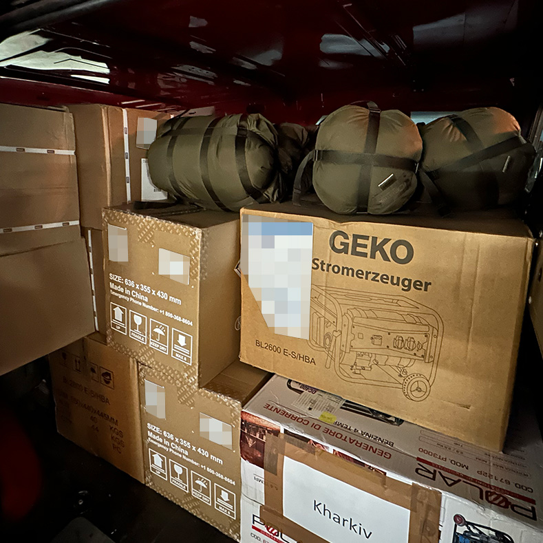 Im Januar und Anfang Februar 2023 lieferten wir Hilfsgüter für über CHF 120’000 an diverse Standorte und zu vielen von unseren lokalen Kontakten in der Ukraine. Der Fokus lag bei diesen Lieferungen auf Generatoren und grossen Batterien.