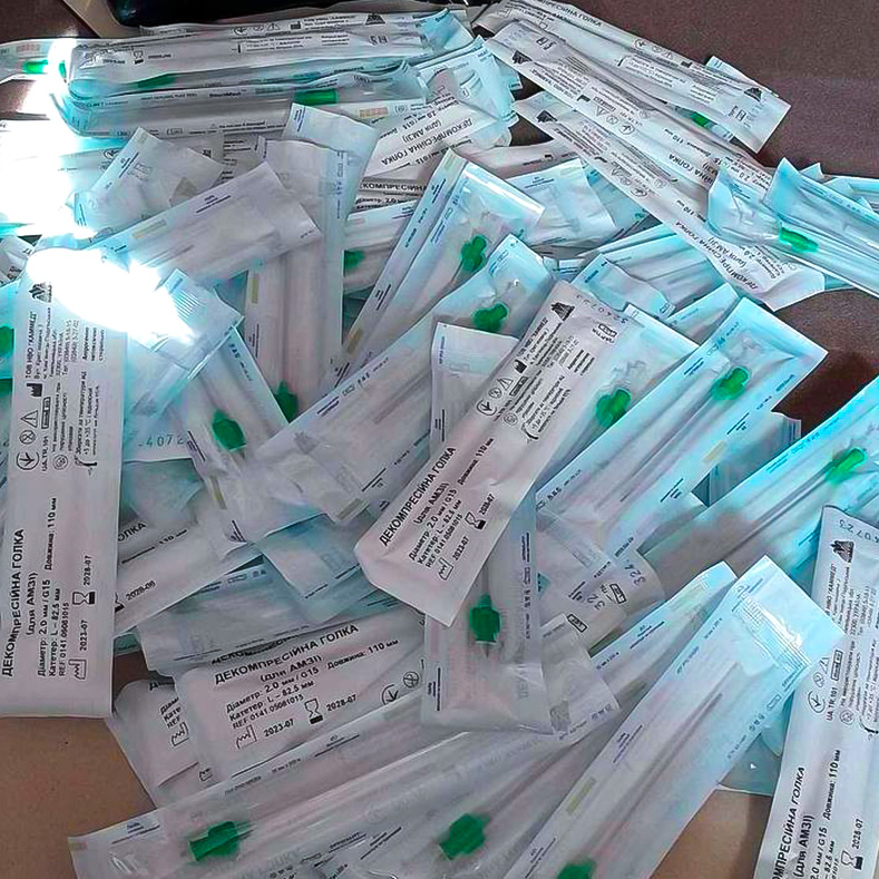 Mitte August konnten wir chirurgische Fäden und Nadeln in grosser Zahl an Krankenhäuser und Lazarette nahe der Front liefern.