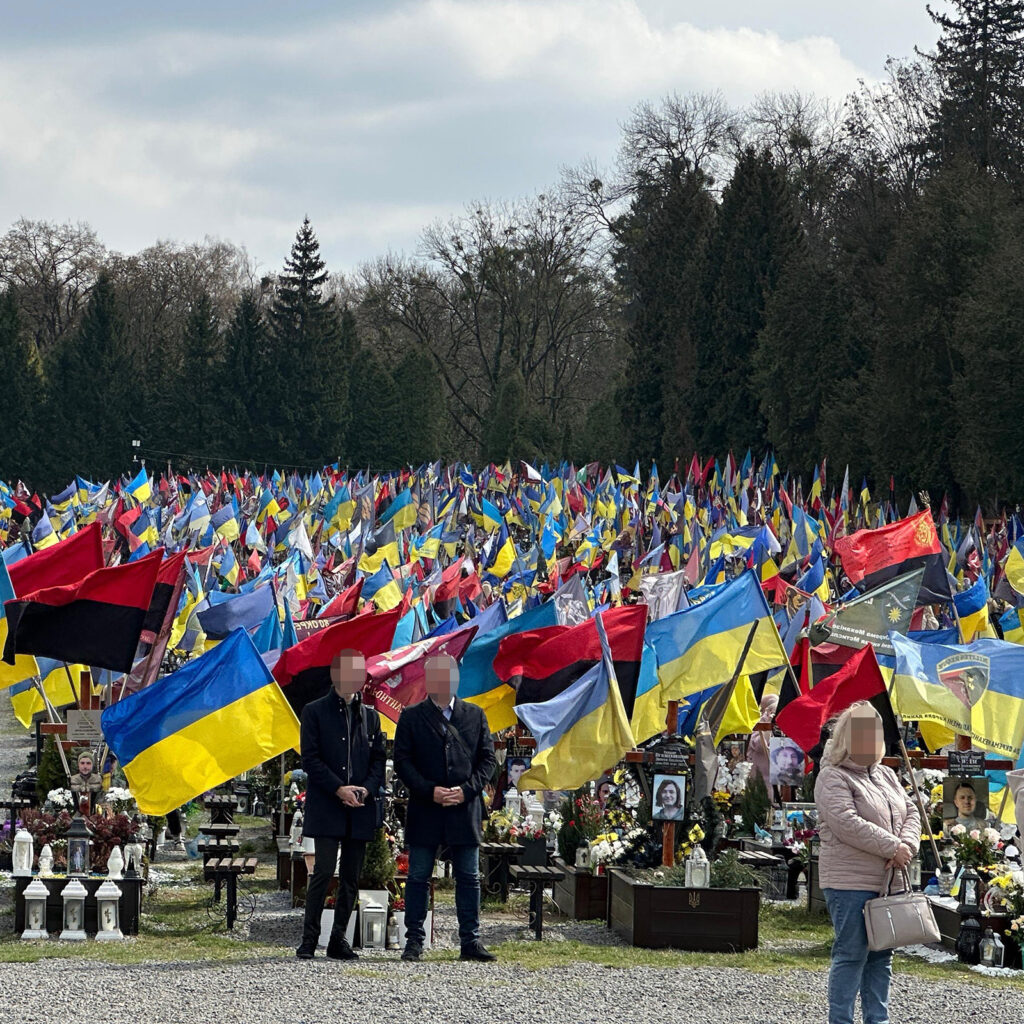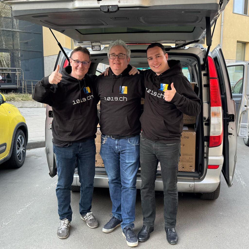 Ende März 2025 konnten wir von 1019 wieder einmal eine Lieferung persönlich in die Ukraine bringen. Mit der Lieferung verbanden wir den Besuch des 95. Jubiläums der Studentenverbindung Obnova. Über die Obnova entstand damals vor über drei Jahren unsere Aktion 1019 und die Obnova ist weiterhin einer unserer wichtigsten Partner. Auf der Reise wurden wir von Patrick Widrig v/o Schwätz begleitet, der im Jahr 2022 Präsident des Schweizerischen Studentenvereins war und damals viel dazu beitrug, den Studentenverein für die Ukrainehilfe und die Zusammenarbeit mit 1019 zu gewinnen. Der Besuch in Lviv führte uns auch auf den Soldatenfriedhof. Ein zutiefst trauriges Erlebnis, das wir nie vergessen werden. Es soll uns Ansporn sein, uns auch weiterhin für die Ukraine einzusetzen.